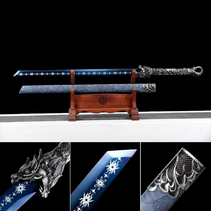 - Blade Material: Manganese Steel with blue baked and engraved finish