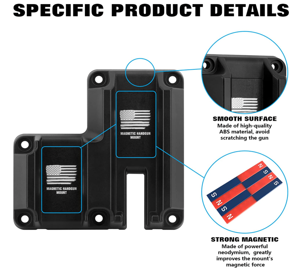 FIXED AND DOES NOT ROTATE - This gun mount is designed to keep your gun from rotating or moving even when attached to a vehicle. Designed with safety in mind, our gun magnetic mount has built inside braces to stabilize your weapon and prevent damage. Our gun magnet mount is made up of ABS material which has a smooth surface to prevent scratches to your gun. Protect your investment with a high-quality mount.