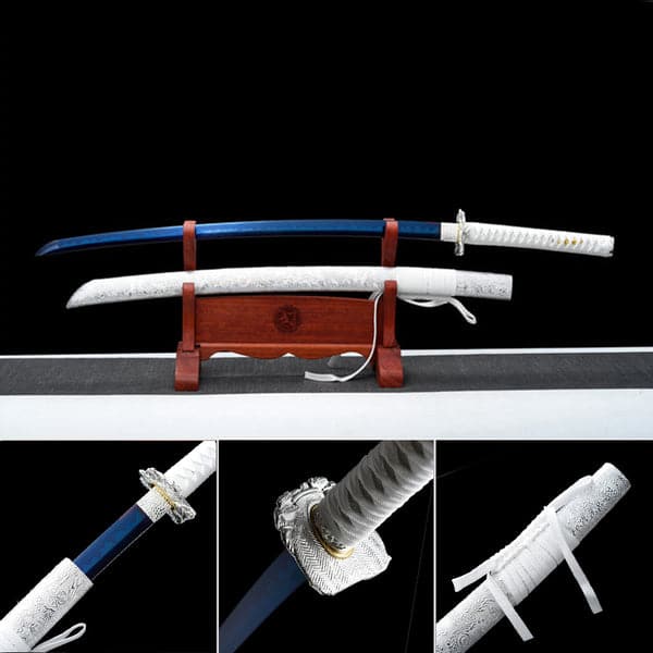 Hand Forged Japanese Samurai Katana Lobelia High Manganese Steel Baked Blue Blade