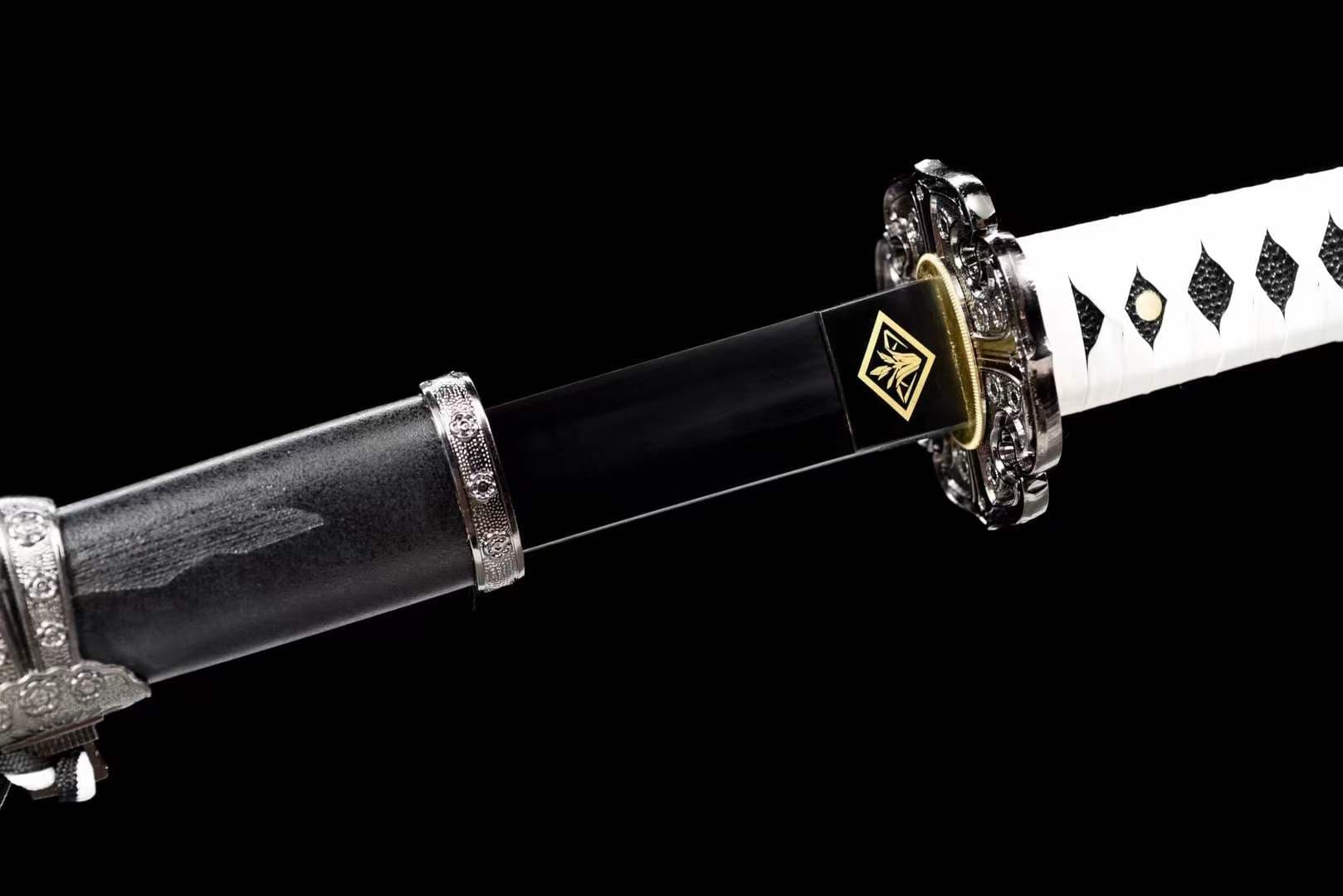 Handmade Undead Cut Katana Sword, Sekiro: Shadows Die Twice Japanese Samurai Sword, Black Manganese Steel Blades, Full Tang