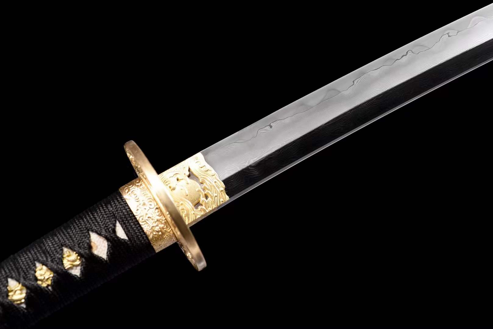 - he blade is crafted from self-smelted pattern steel, with a T10 iron core, employing traditional folded steel technique, clay-tempered edge, hand-polished with fifteen steps, true horizontal hand-polishing.