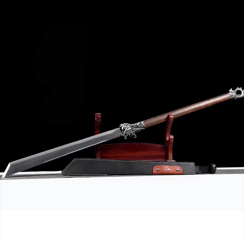 The handle, crafted from beautiful rosewood, provides a comfortable grip while adding a touch of sophistication to the sword.