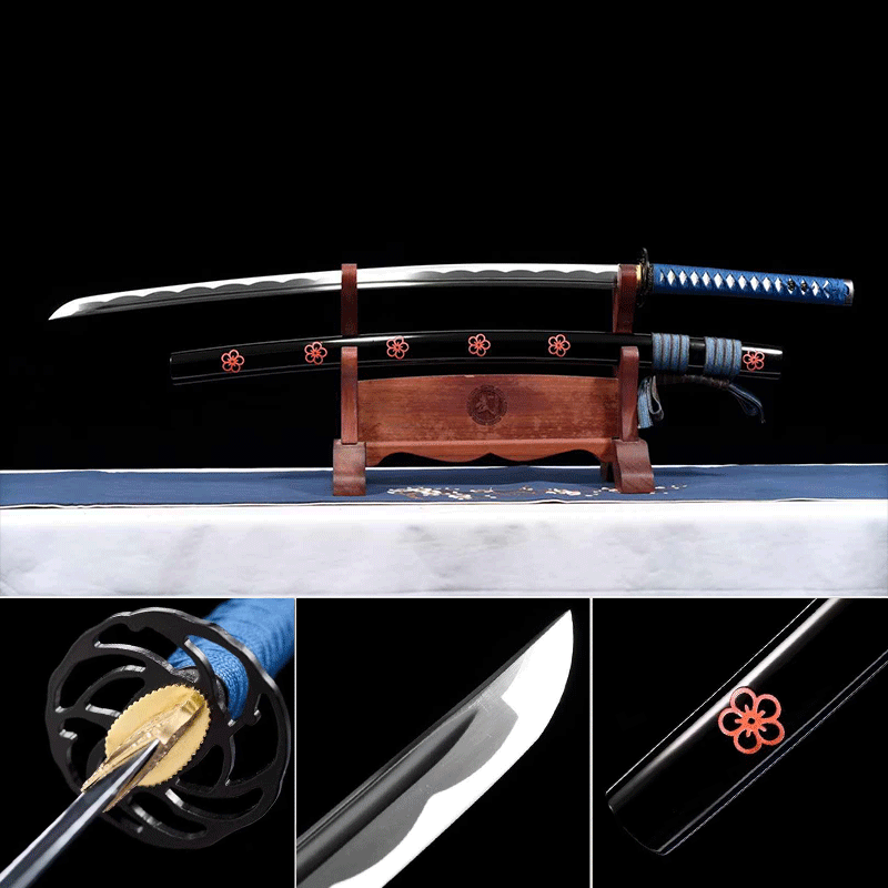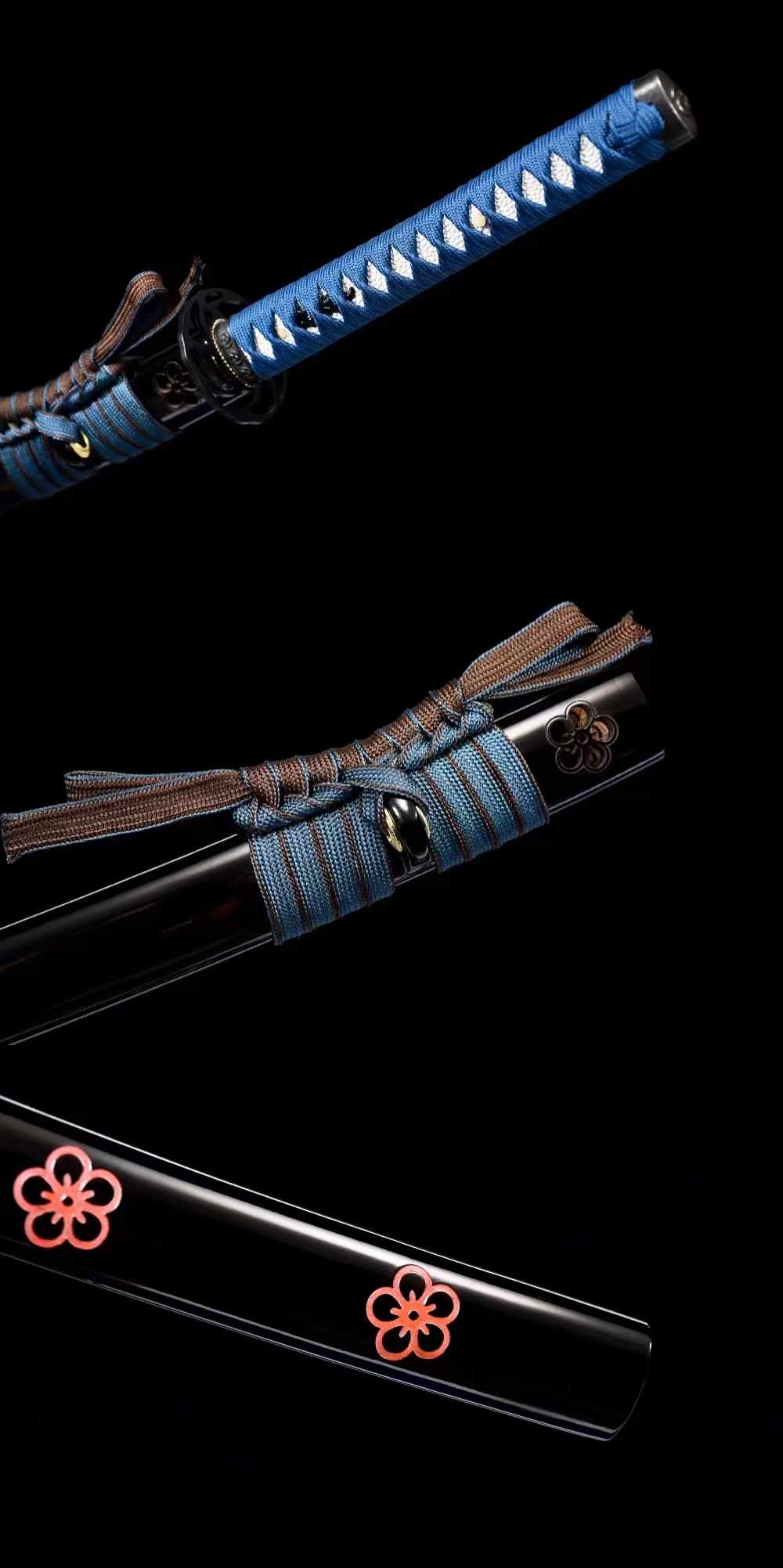 - Lacquered Solid Wood Carved Scabbard with Decorative Sword Tassel
