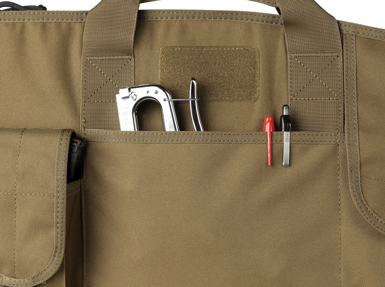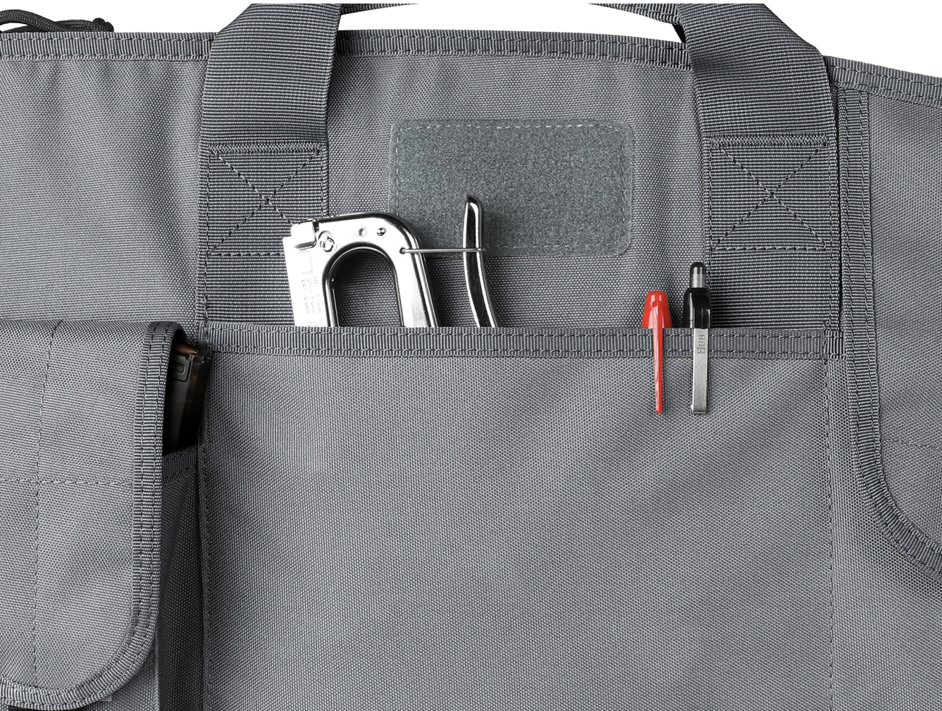 - Exterior Accessory Pocket Size - 18” W x 6-9” H