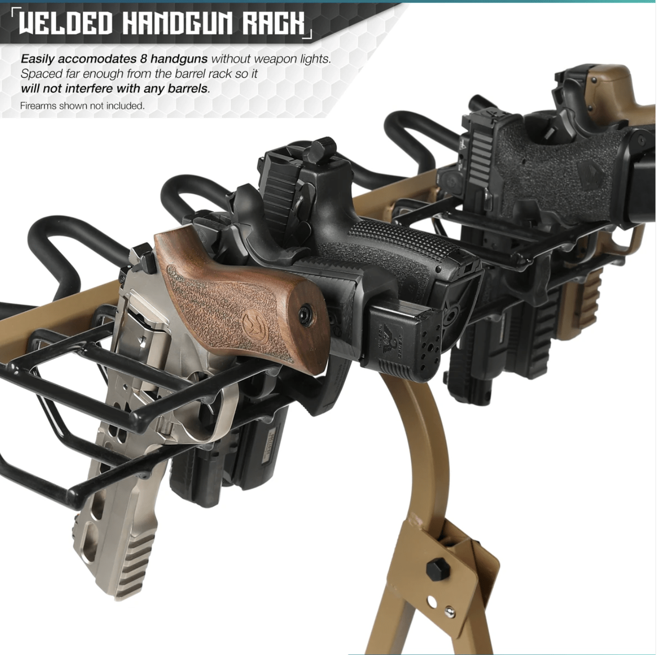 Whether you’re setting up for a match, hosting a range day, or organizing your man cave, this foldable AR-15 and pistol rack holds your prized collection securely and travels easily. No tools needed, no fuss — just a durable, powder-coated tactical gear stand designed by shooters, for shooters.
