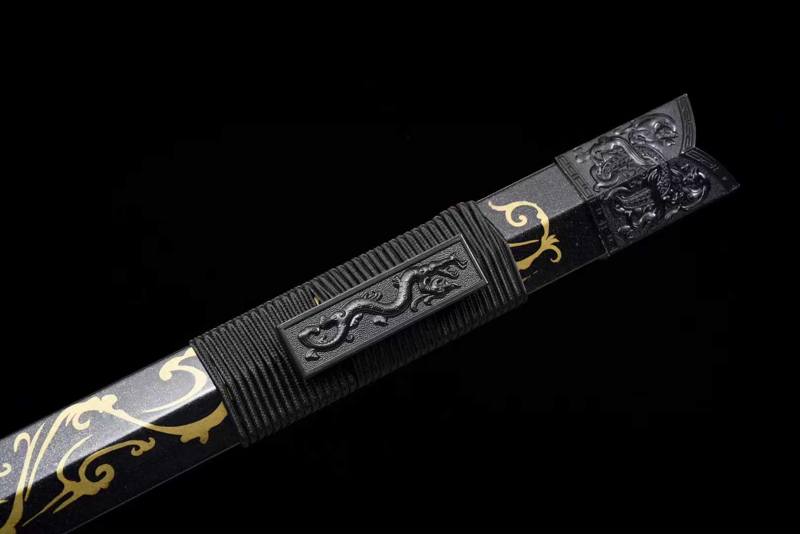 - This "Wudi" sword features a high-manganese steel blade that has been expertly hardened and octagonally ground, giving it a striking and powerful appearance. The solid wood scabbard is lacquered and decorated with a vibrant dragon motif, while the zinc alloy handle provides a comfortable and secure grip.